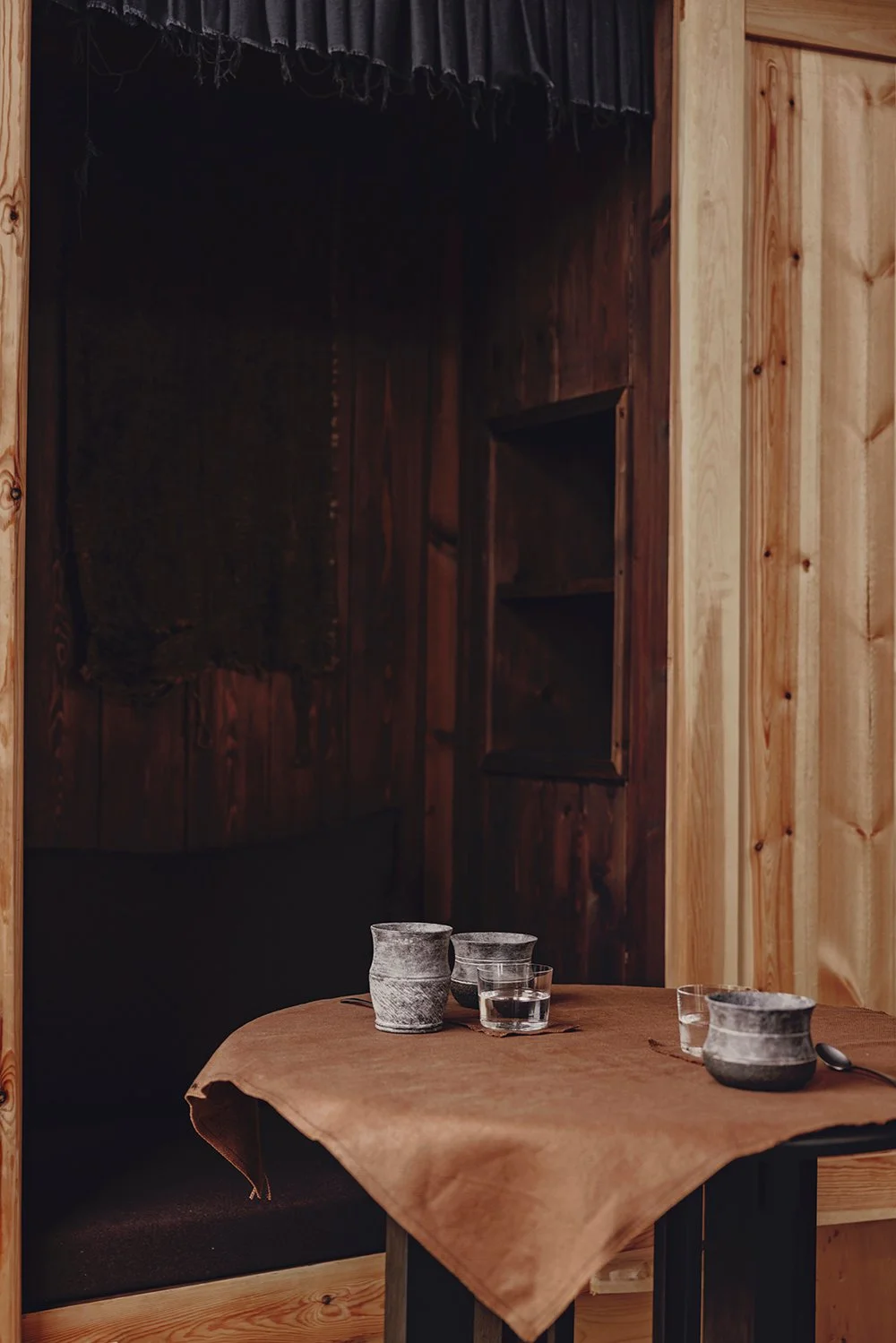 Dining at Norden moves with the day and the light. Breakfast is served in a spacious Tibetan timber hall, its high beams and open hearth creating a warm welcome. Lunch takes place in the open-air lunch gardens, shaded by yak-hair tent awnings and surrounded by the vast plateau landscape. Evenings gather in the Black Tent, an intimate space for lingering over conversation and flavour.